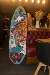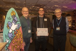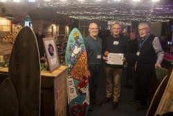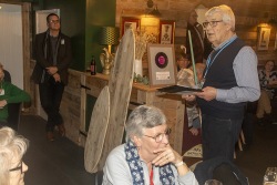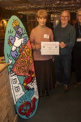 At the Friends Bistro to present the 2025 grant awards and allocate the surfboards for the 2026 Art Trail.